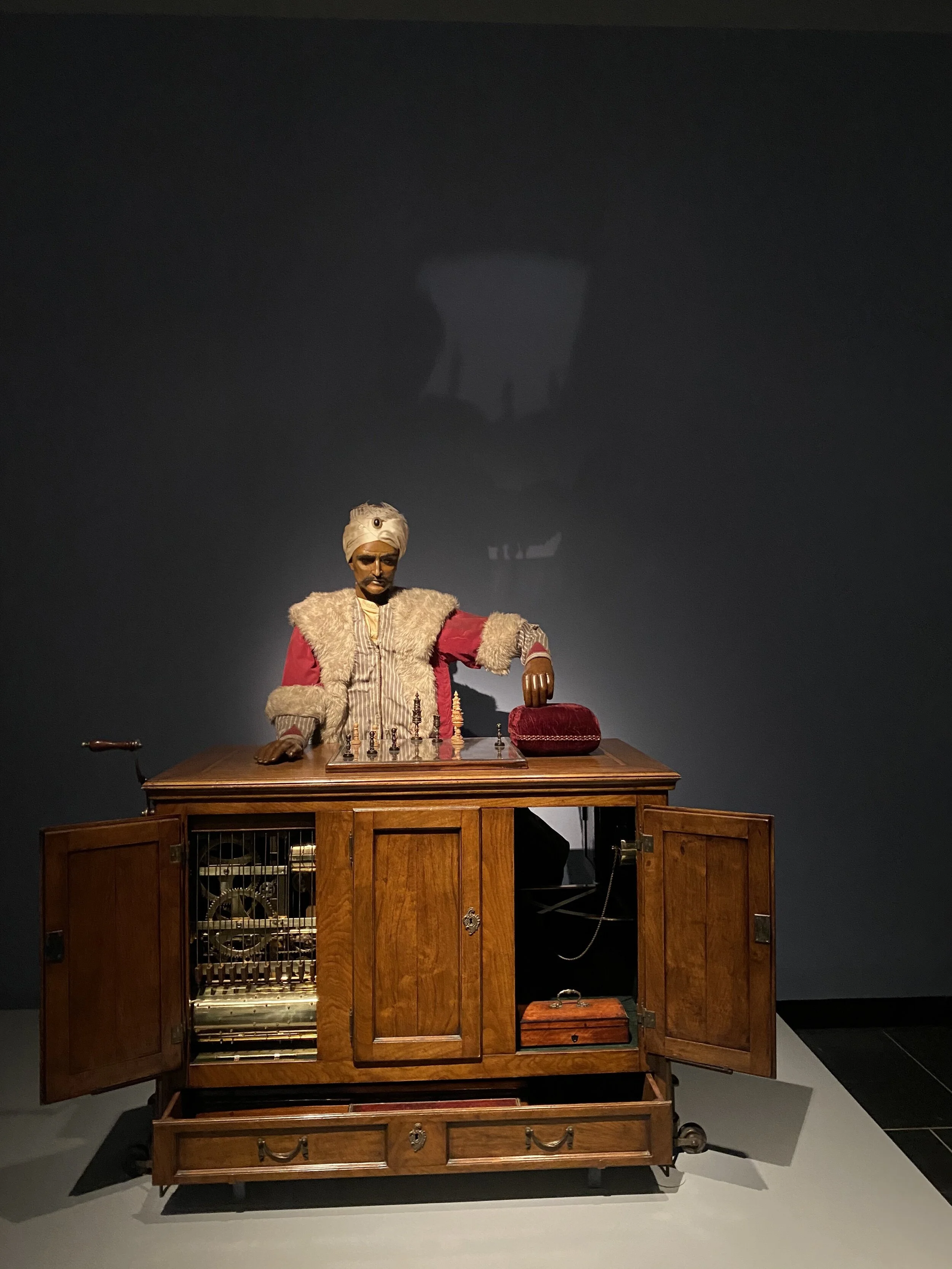 The pieces that impressed me were automata, mechanized figures based on the same self-moving gear systems that powered the clocks that serve as a reminder of our craving as humans to create artificial life even in 15th century.